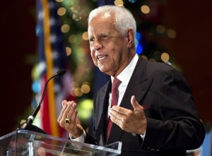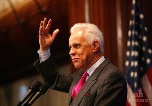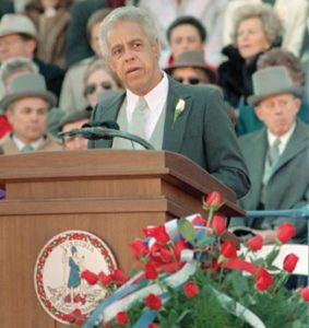 **FILE** In this Sept. 18, 1989 file photo, Virginia Lt. Governor and Democratic nominee for Governor, L. Douglas Wilder, gestures during his acceptance speech at the Virginia Democratic Convention in Richmond. Today there is widespread disagreement about whether Barack Obama is subject to the predicament known as the Wilder or Bradley Effect, whether in the confessional atmosphere of the voting booth, white people will actually pull the lever for the first black man to come within shouting distance of the presidency. (AP Photo, File)